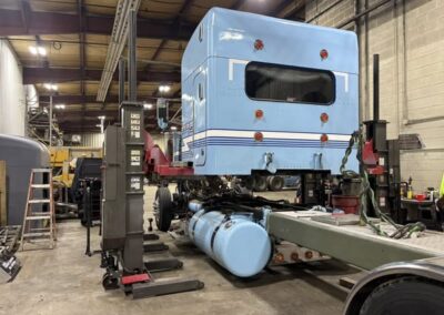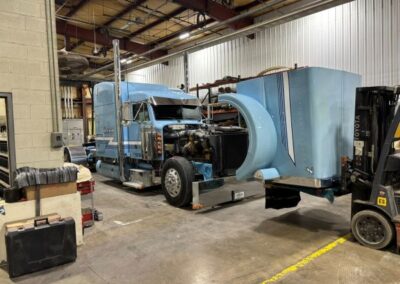This week we’ve started a new project. Our team is stripping the semi-truck cab down to prepare it for sandblasting services and a professional semi-truck painting job. This process not only improves the look of your rig but also protects it against rust, corrosion, and everyday wear.